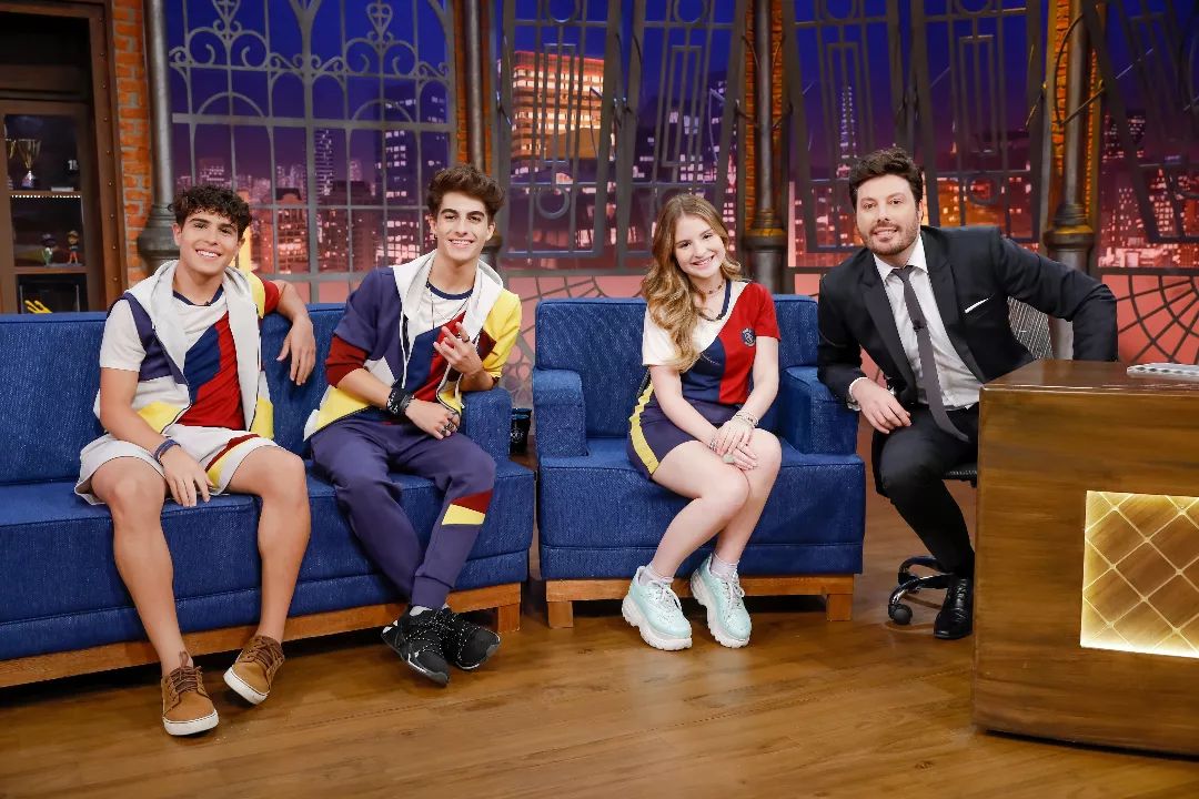 Sobre a interação entre eles, Igor ressalta: “vão se completar cinco anos que a gente está junto, a gente se encontra mais que família de verdade”. Falando da rivalidade que tem com o personagem de Lucas, Igor declara: “isso é uma das coisas mais difíceis de fazer esse personagem. A gente tem que se odiar e, de vez em quando, a amizade fala mais alto”. Questionada a respeito de já ter tomado um ‘fora’, Sophia revela: “um único fora. E, inclusive, o Igor sabe desse fora. O Igor é meu psicólogo”. Danilo pergunta de onde é a pessoa que fez isso com a atriz, que conta: “de Fortaleza”. O apresentador ainda propõe a Lucas que o ensine a sapatear durante o papo. “Precisei aprender a sapatear para conseguir o papel do Eric”, diz Burgatti.