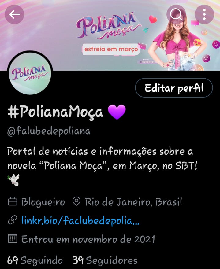 Se liga nas redes sociais de Fã Clube de Poliana Moça da nova novela do sbt