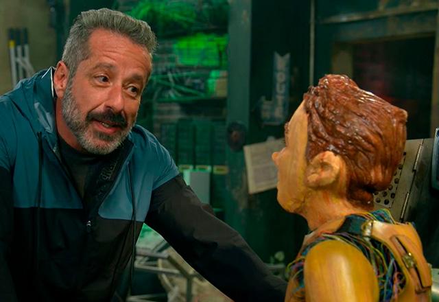 Enquanto “Magabelo” e “Yupecho” investigam juntos sumiço de Pinóquio, Violeta e Waldisney já fazem planos para aprimorar o sistema do boneco.